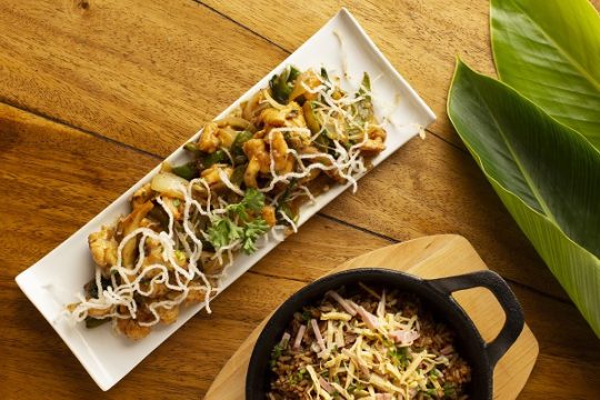 Imagina tu cena o tu gran festejo navideño envuelto en el aroma inconfundible que sale de los hornos de leña, donde se asan al momento el emblemático Pollo al Mangle y la suculenta Pierna de Cerdo BBQ, siguiendo el marinado secreto que es patrimonio del lugar. Piensa en tu mesa compartiendo un Arroz «Bora-Bora» o saboreando la exquisitez del mar con una Langosta Kon-Tiki.
